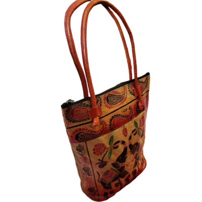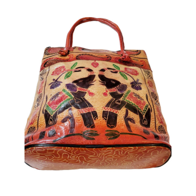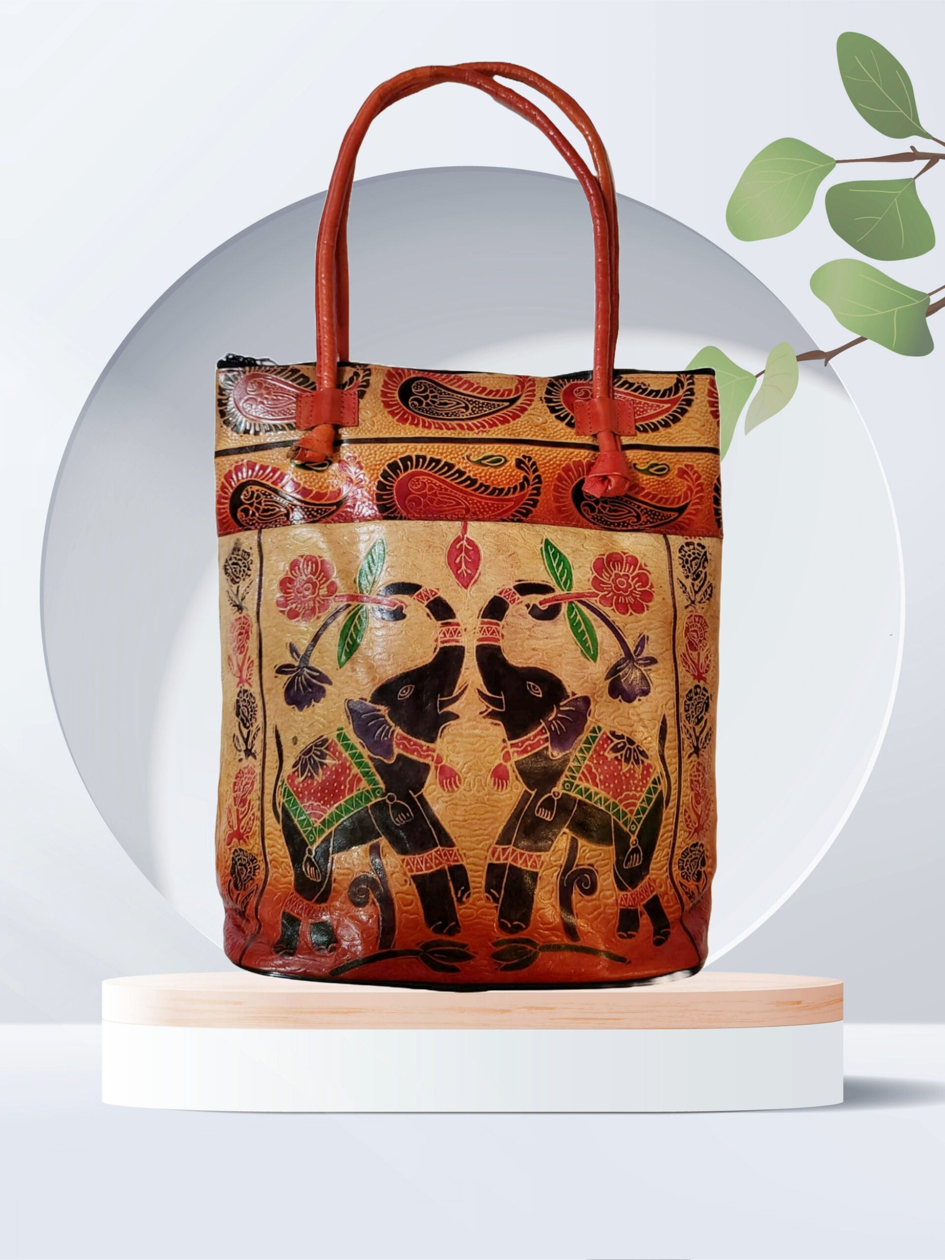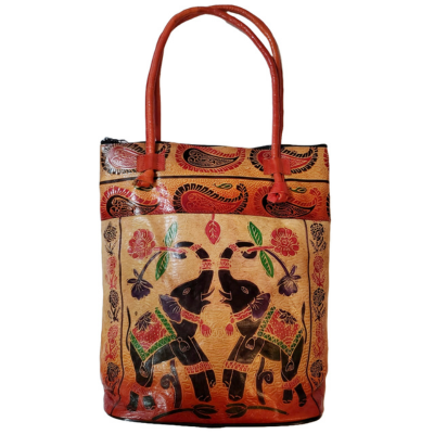 Shantiniketan Genuine Leather Ladies Shoulder Bag Dual Elephant 14x14