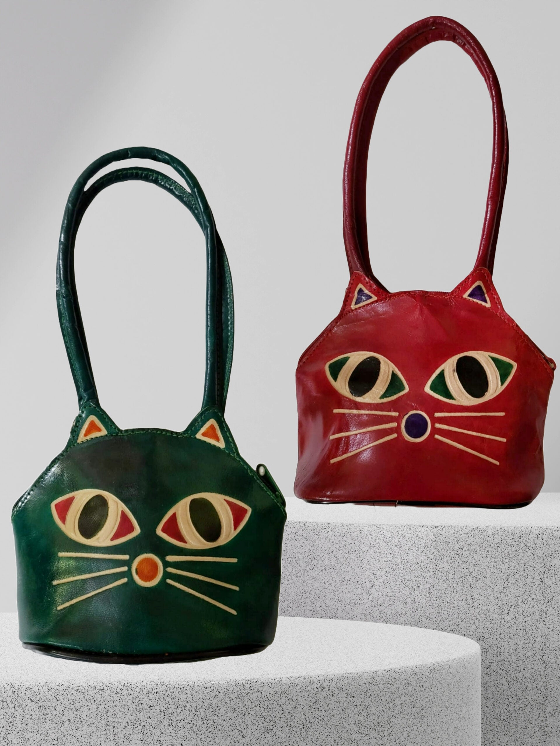 CLASSIQUE Shantiniketan Ladies Handbag Batua Cat Print Red+Green