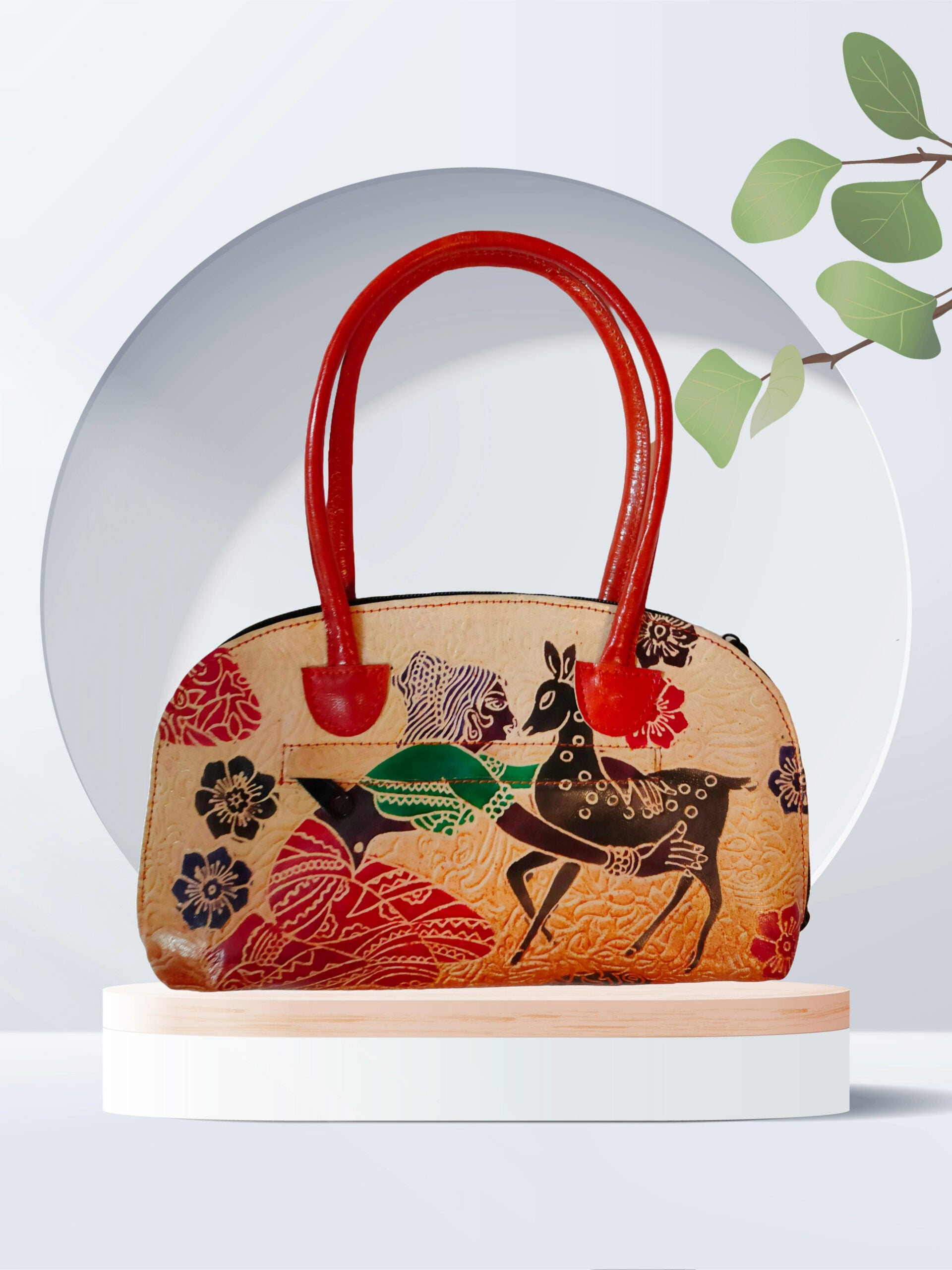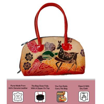 Shantiniketan Pure Leather Traditional Handbag Shakuntala With Deer