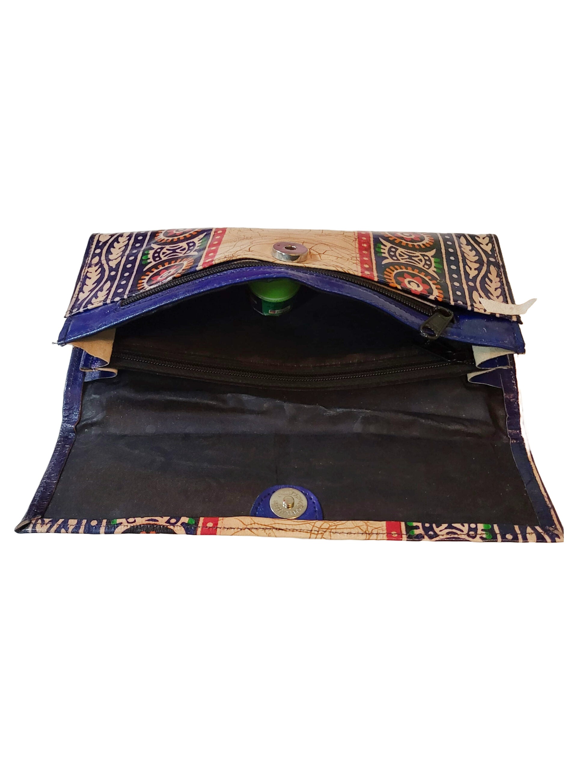 Shantiniketan Batik Print Blue Leather 10inch Clutch Handpurse