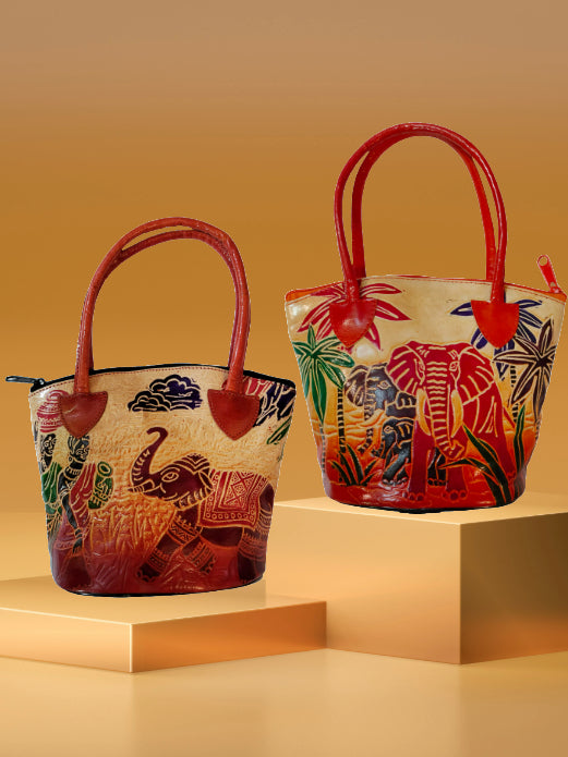 Shantiniketan Pure Leather Small Batua (Combo Of 2) Lady Elephant+Safari
