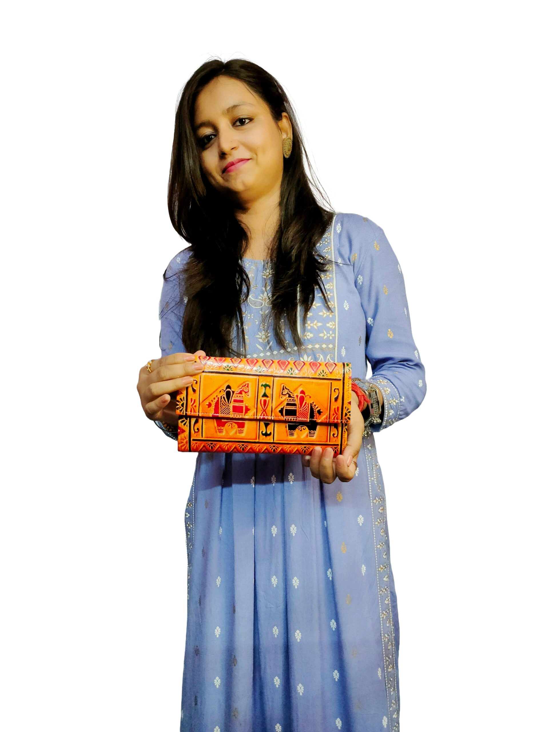 Women’s Shantiniketan Leather Clutch Double Ghora Matka (8 * 5)